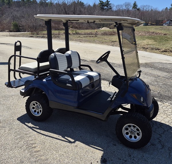 2011 Yamaha Drive 48-volt electric with sun top, windshield, flip style rear facing seat with safety handle, headlights/taillights, 3" lift kit w/10" wheels/tires, mirror, 2-tone front seats, charger & NEW Trojan batteries